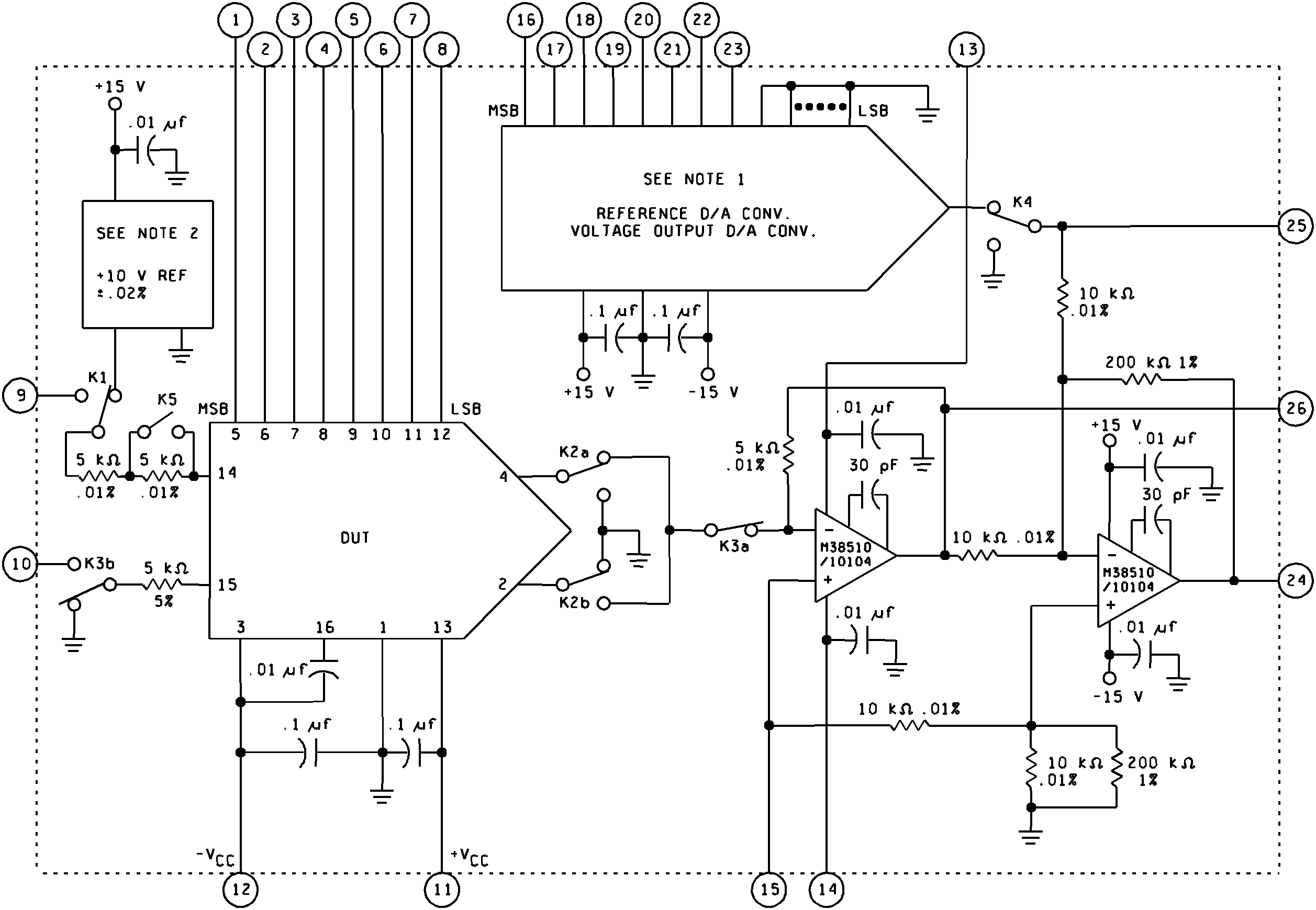 The reference D/A converter selected should have a resolution of 8 bits or more, and a linearity of 0.015% or better. |