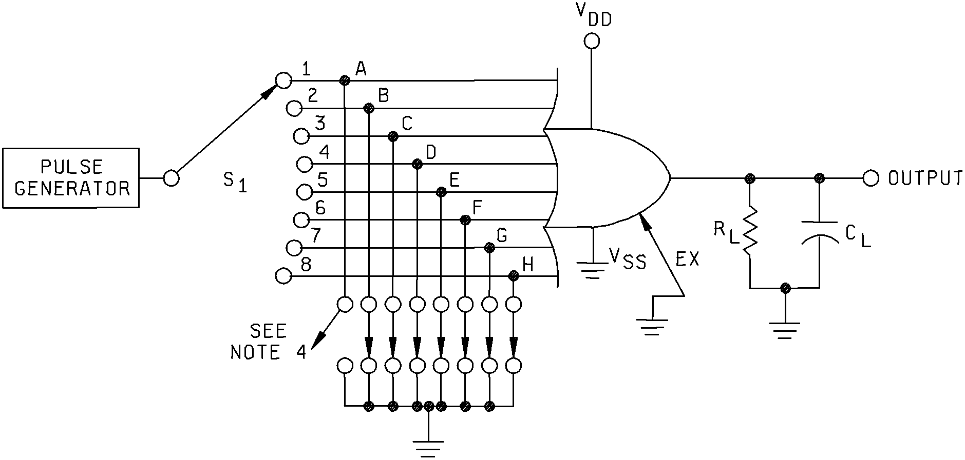 4. All inputs are tied to VSS except for input connected to the pulse generator.